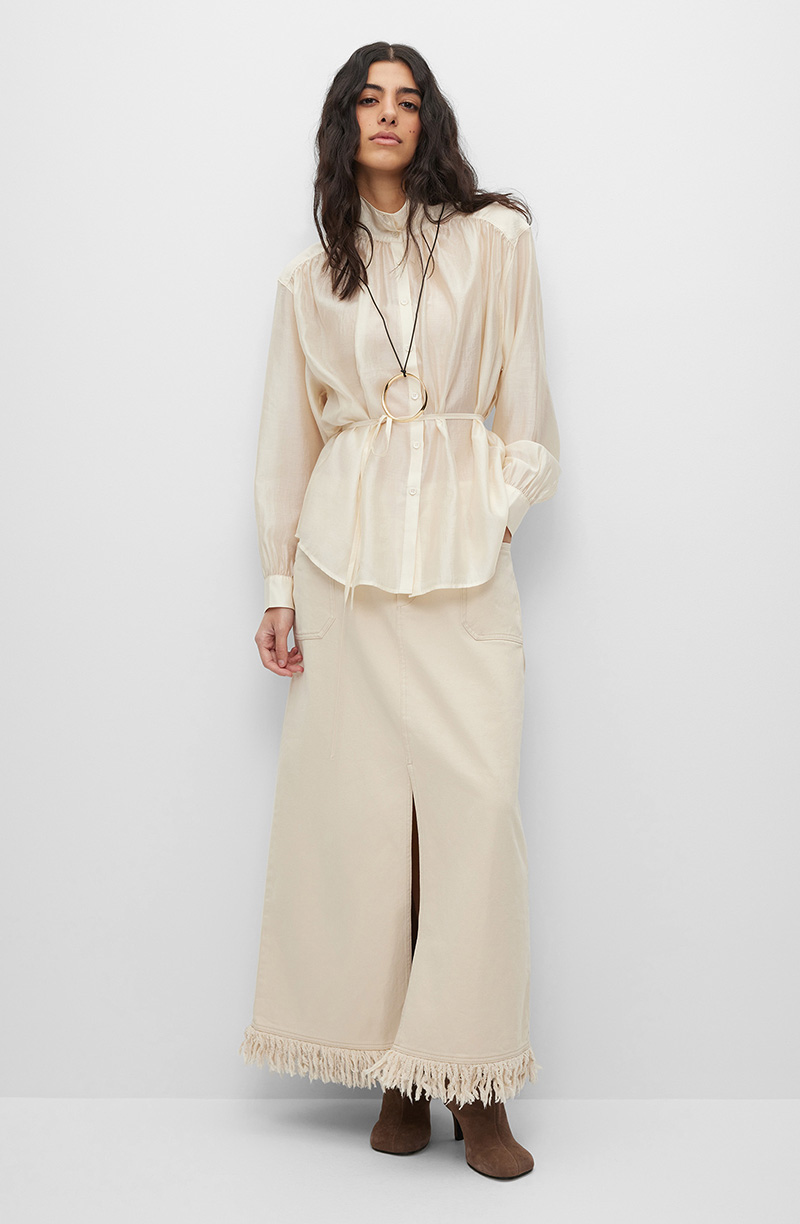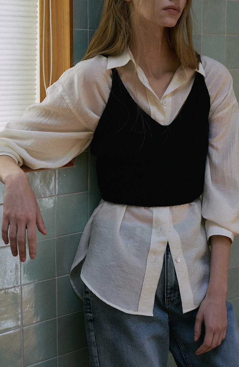 Светло-голубая рубашка стандартной длины со спущенными рукавами