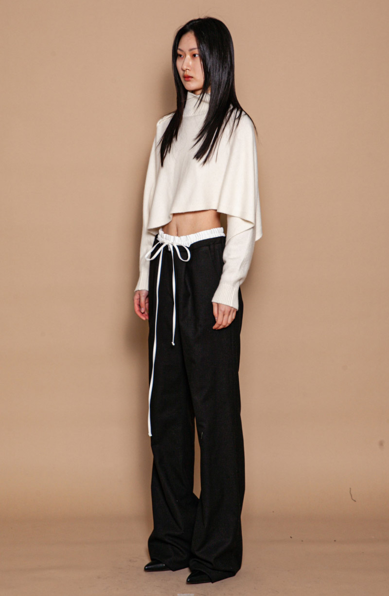 Укороченный свободный свитер с закрытым горлом