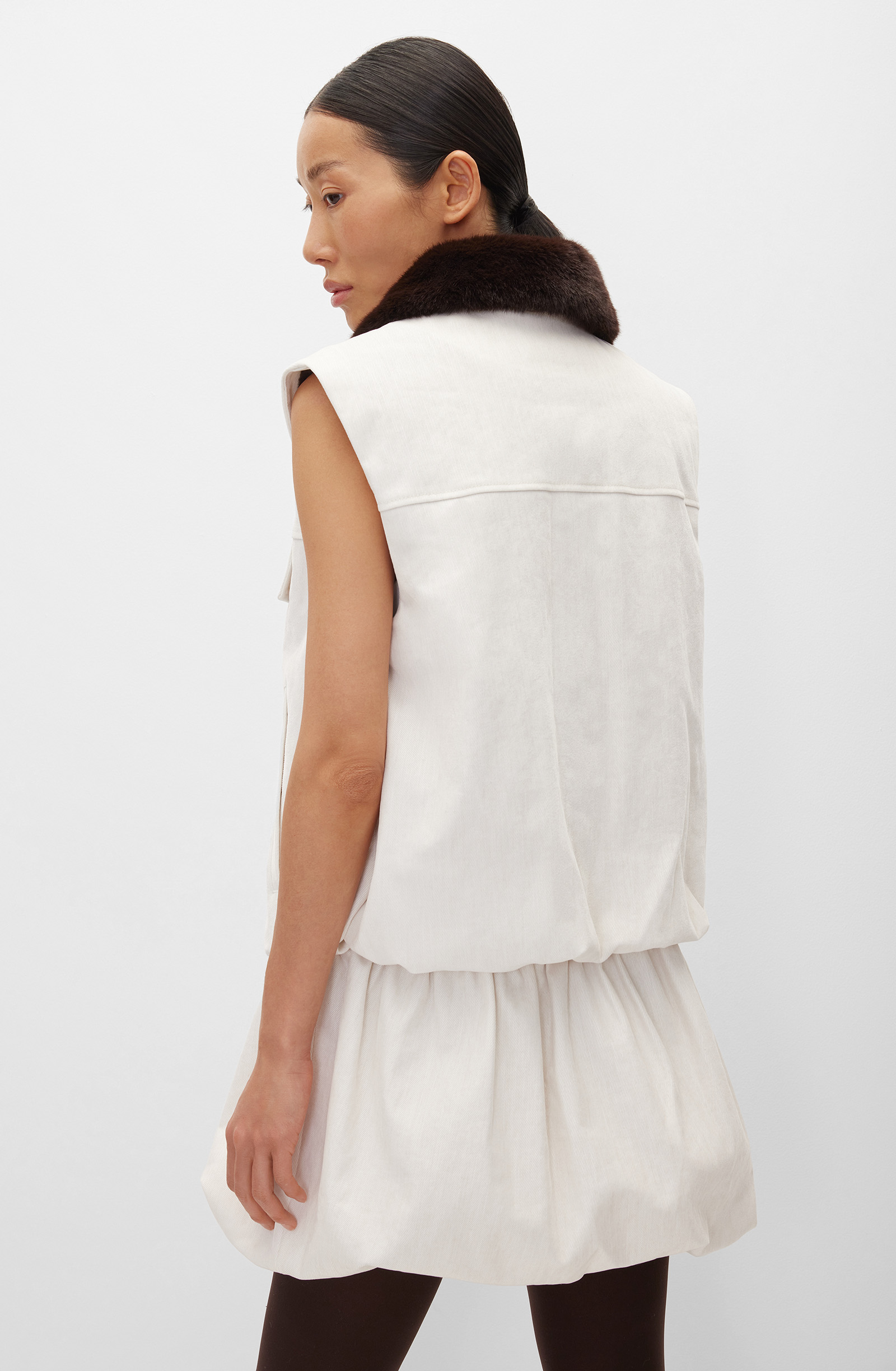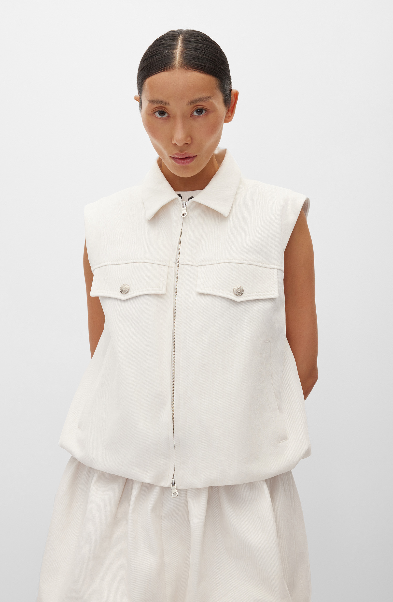 Жилет прямого кроя объединяет современный стиль, комфорт и надежность. Степень застегивания регулируется молнией, что позволяет создавать строгие и расслабленные образы. Боковые карманы и накладные карманы на кнопках в области груди добавляют функциональности. Модель выполнена из хлопкового вельвета в средний рубчик. Мягкая гипоаллергенная ткань хорошо держит форму и сохраняет опрятный вид в течение дня. Шелковистая подкладка обеспечивает правильную посадку изделия по фигуре и поддерживает комфорт. Универсальный дизайн позволяет комбинировать жилет с юбками, джинсами и брюками. В сочетании с платьями, рубашками, футболками и худи можно создавать модные многослойные образы.