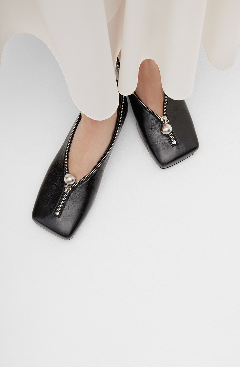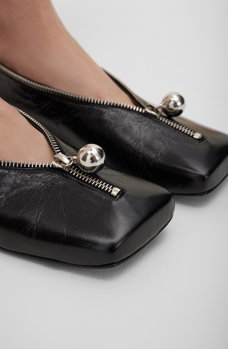 Ничего лишнего и всё — чтобы запомниться. Мягкая телячья кожа быстро подстраивается под ногу, будто туфли уже давно ваши. Каблук едва заметен — но именно он делает походку чуть увереннее. Металлические детали — деликатная игра на контрасте: не громко, но заметно. Такая пара не спорит с образом и добавляет к нему свою интонацию. Хорошо смотрятся с удлинёнными пальто, строгими юбками и платьями, в которых легко заходить в книжный магазин, музей или на поздний завтрак.