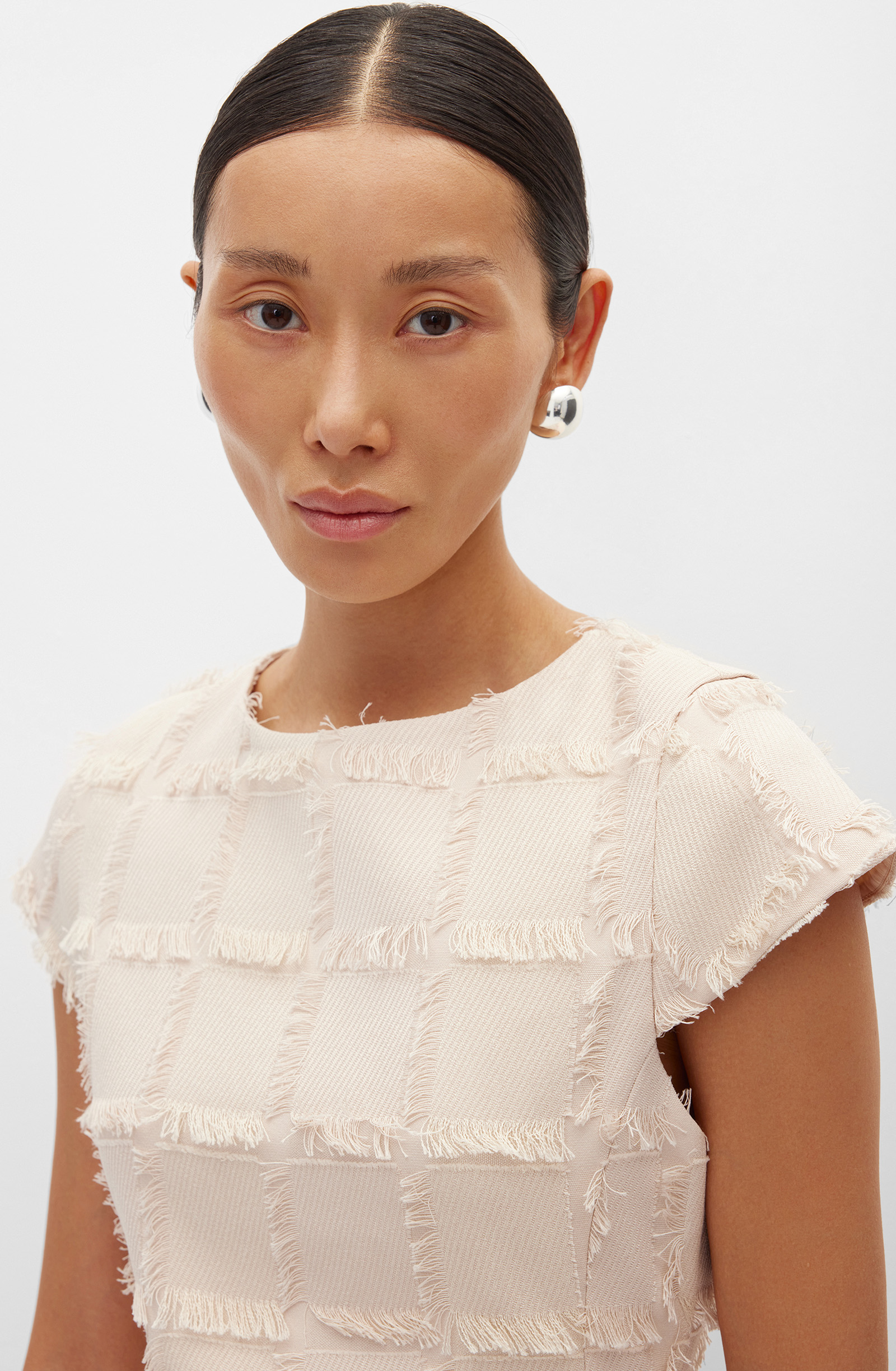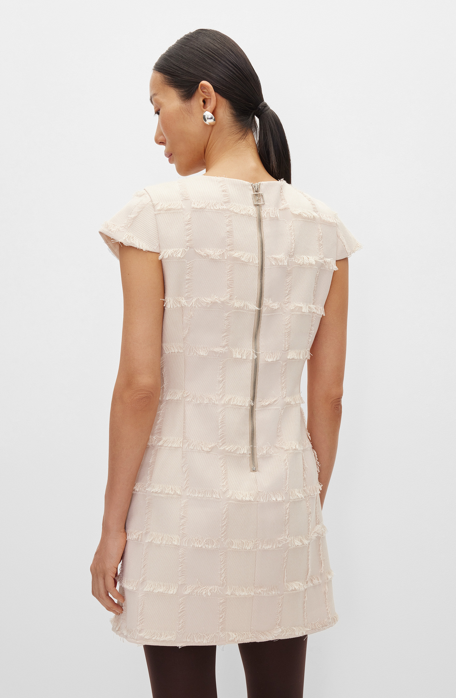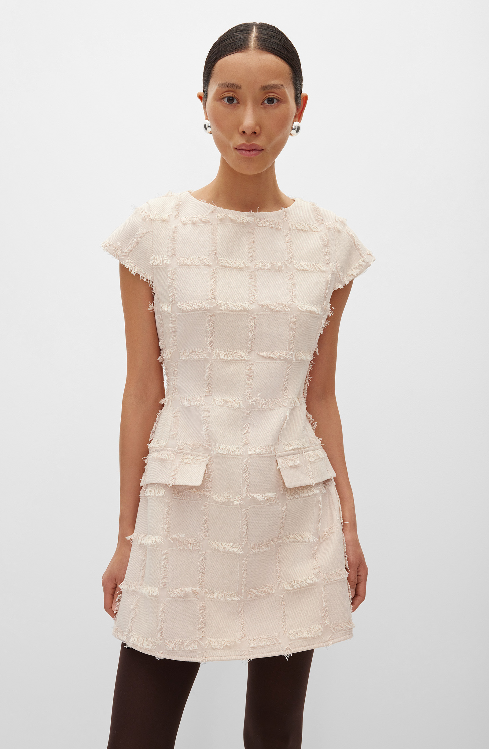Платье приталенного силуэта с декоративными элементами и расширяющейся юбкой-трапецией. Застегивается на молнию в среднем шве спинки. Горловина округлая. Короткие рукава втачные, малого объема. Длина юбки выше колена. Модель выполнена из фактурного материала. Мягкая, пластичная и малорастяжимая ткань хорошо держит форму и сохраняет презентабельный вид в течение дня. Подкладка из приятной к телу шелковистой ткани обеспечивает комфорт и правильную посадку по фигуре. Мини-платье станет ключевым элементом гардероба, подходящим для офиса и особенных мероприятий. Дополнением к нему станут структурный жакет, трикотажный кардиган и акцентные аксессуары.