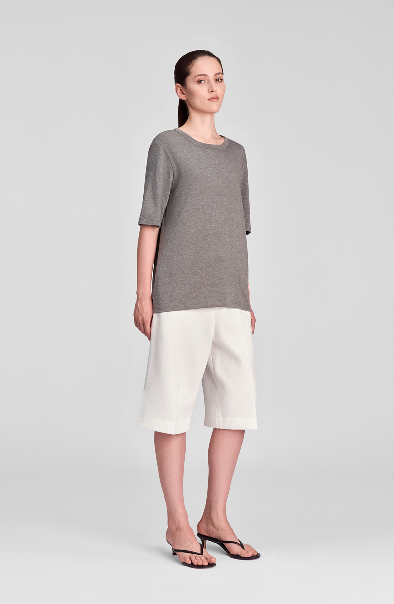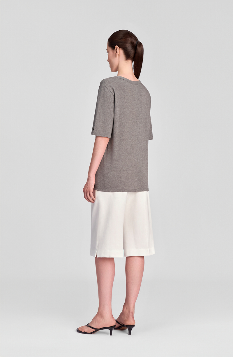 Бермуды в классическом стиле с прямым силуэтом и аккуратной длиной, подходящей для разных ситуаций. Детали отделки подчеркивают качество и продуманность дизайна. Модель сшита из хлопка и полиэстера, что придает ей износостойкости и мягкости. Такая комбинация дает возможность сохранить форму и обеспечить комфорт даже при длительной носке. Бермуды прекрасно гармонируют с жакетами, блузами, свитшотами и футболками. Это идеальный вариант для встреч и прогулок. Они могут входить в офисный гардероб.