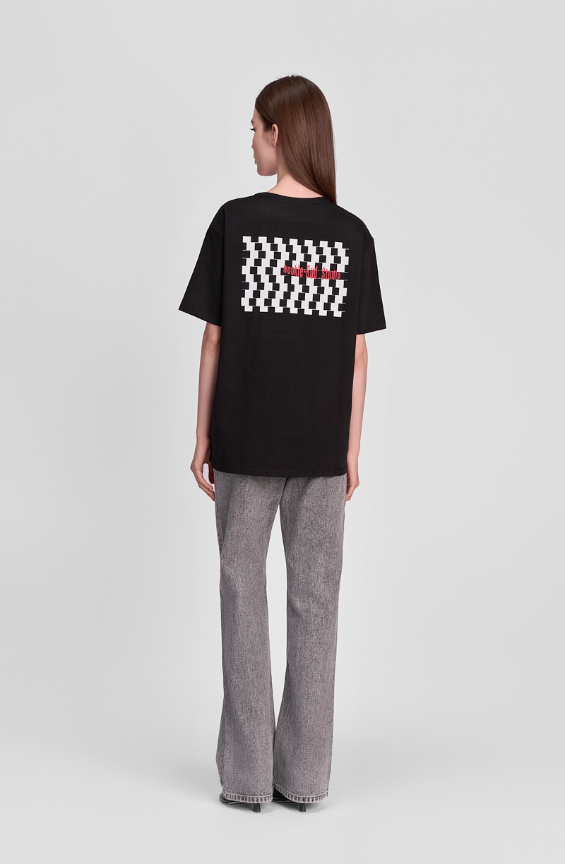 Футболка свободного кроя с удлиненной спинкой. На груди спереди и посередине сзади есть выразительный принт, притягивающий взгляд. Модель легко адаптируются под любой гардероб. Модель пошита из 100% хлопка, приятного на ощупь, позволяющего коже дышать и сохраняющего форму после стирок. Отделка сделана с добавлением спандекса, что дает легкую эластичность, поэтому одежда комфортно сидит и не сковывает движений. Футболка подходит для поездок, прогулок и дружеских встреч. Ее можно комбинировать с кроссовками и джинсами, создавая расслабленный образ. А сочетание с пиджаком и юбкой формирует смелый и яркий наряд.