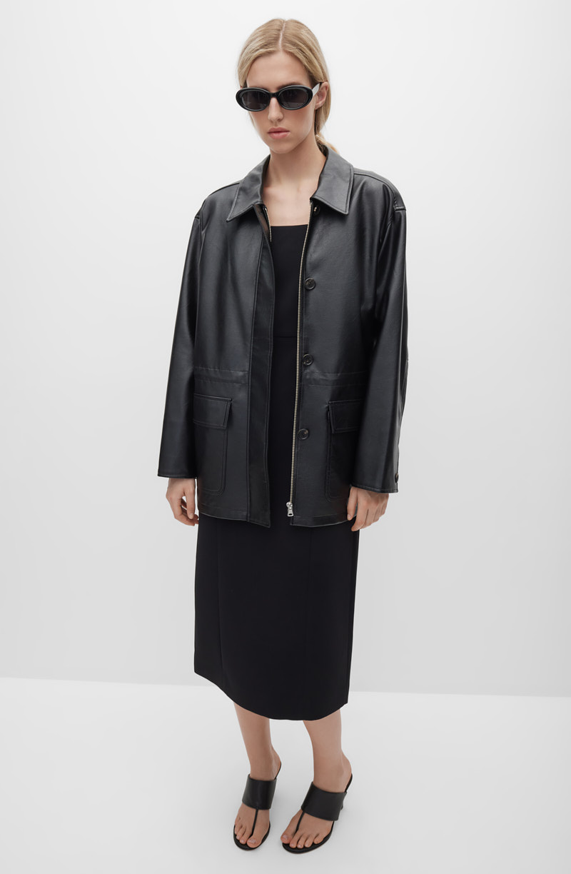 Удлиненная черная куртка на пуговицах с отложным воротником