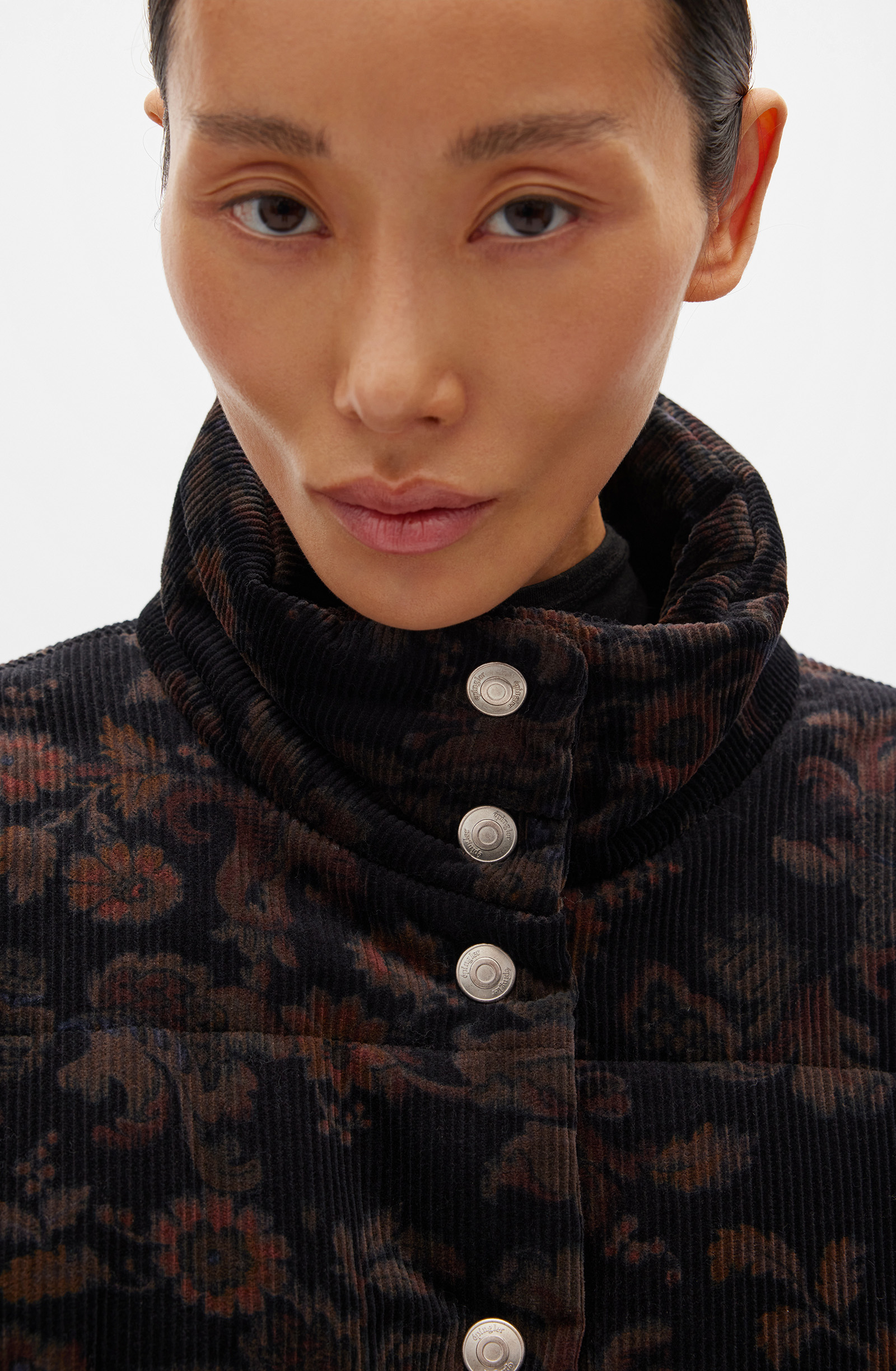 Укороченная вельветовая куртка на кнопках